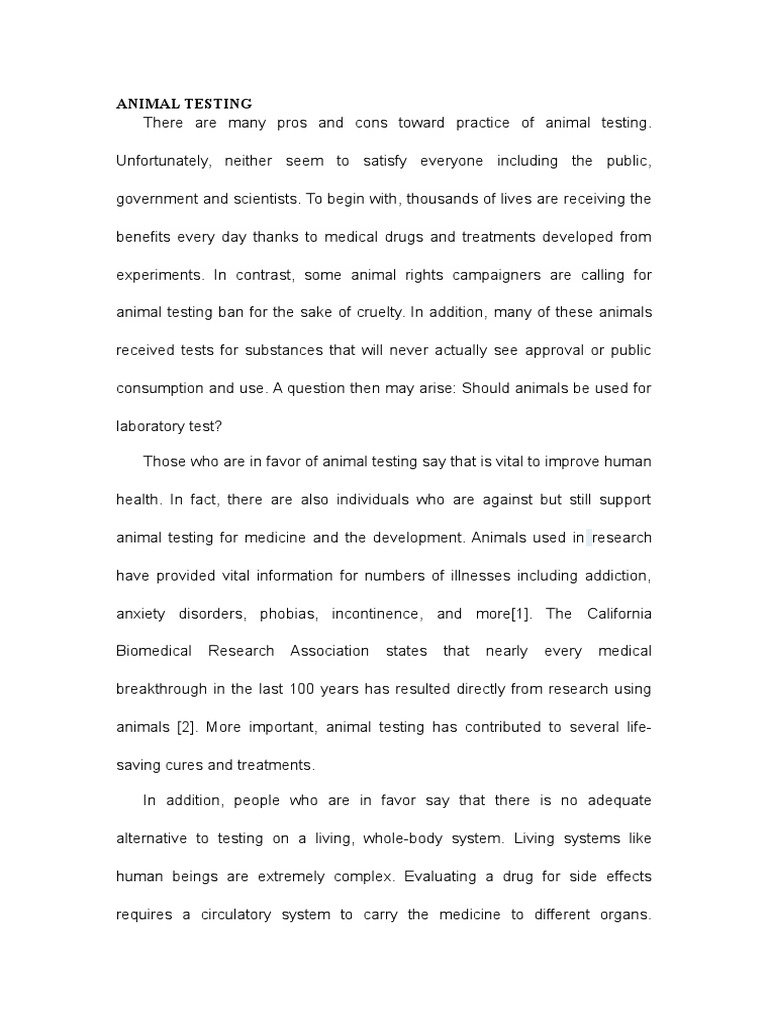 Animal Testing Pros And Cons Essay. Animal testing is cruel and unreasonable. Animals are a total different species than humans.